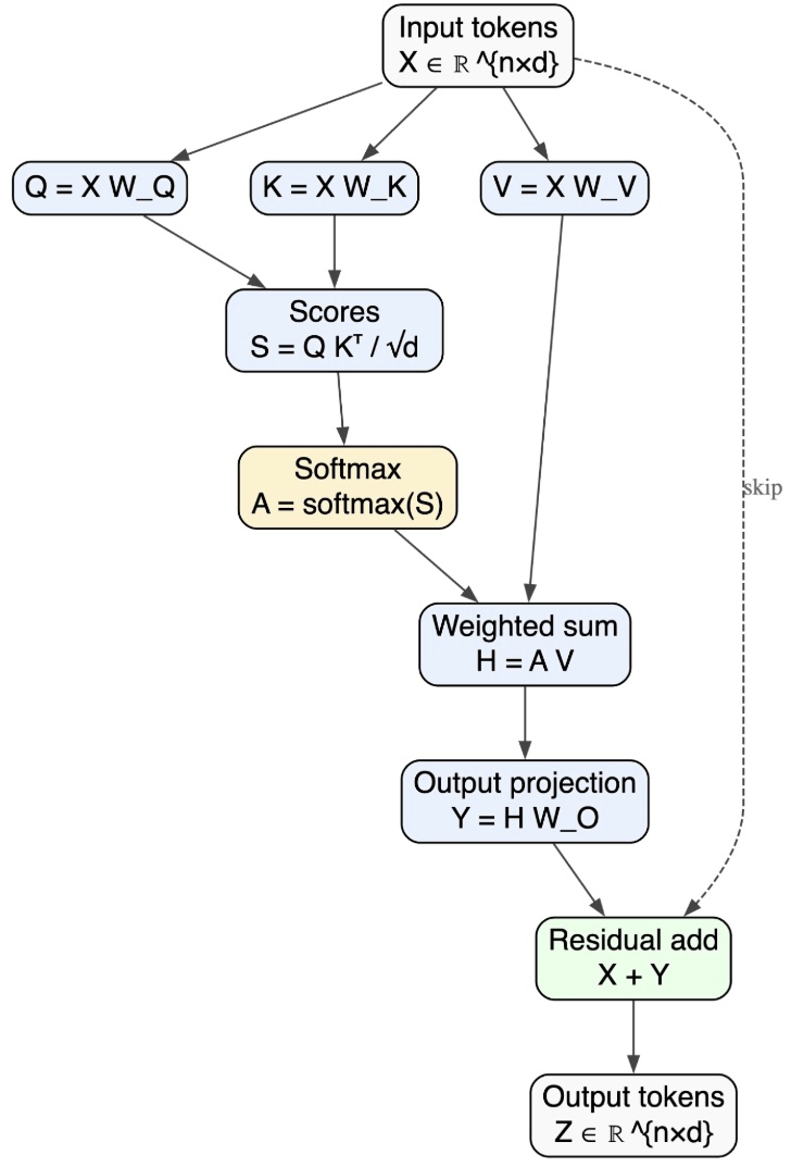 Modern AI inference is implemented as long sequences of arithmetic operations. Whether we build a small multilayer perceptron or a large transformer, our models are algebraic machinesI’ll refer to “arithmetic” and “algebraic operations” interchangeably. : inference consists of executing a long, ordered sequence of discrete mathematical operations. Across architectures, the list of primitives is remarkably small: matrix vector multiplies, nonlinearities, and occasional normalization steps. In practice, modern ML frameworks like Tensorflow, PyTorch, and JAX compile model descriptions into computational graphsOr in the case of JAX, an intermediate representation serving a similar role. that explicitly specify the ordered sequence of arithmetic operations required for inference.